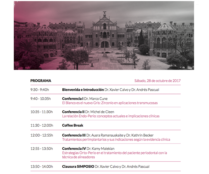 Este año, celebramos el Simposio Perio·Aid, un encuentro muy especial que tendrá lugar el sábado 28 de octubre en el Recinto Modernista del antiguo Hospital Sant Pau en Barcelona, dónde ponentes internacionales de referencia, hablarán sobre la periodoncia y su interrelación con otras disciplinas odontológicas.